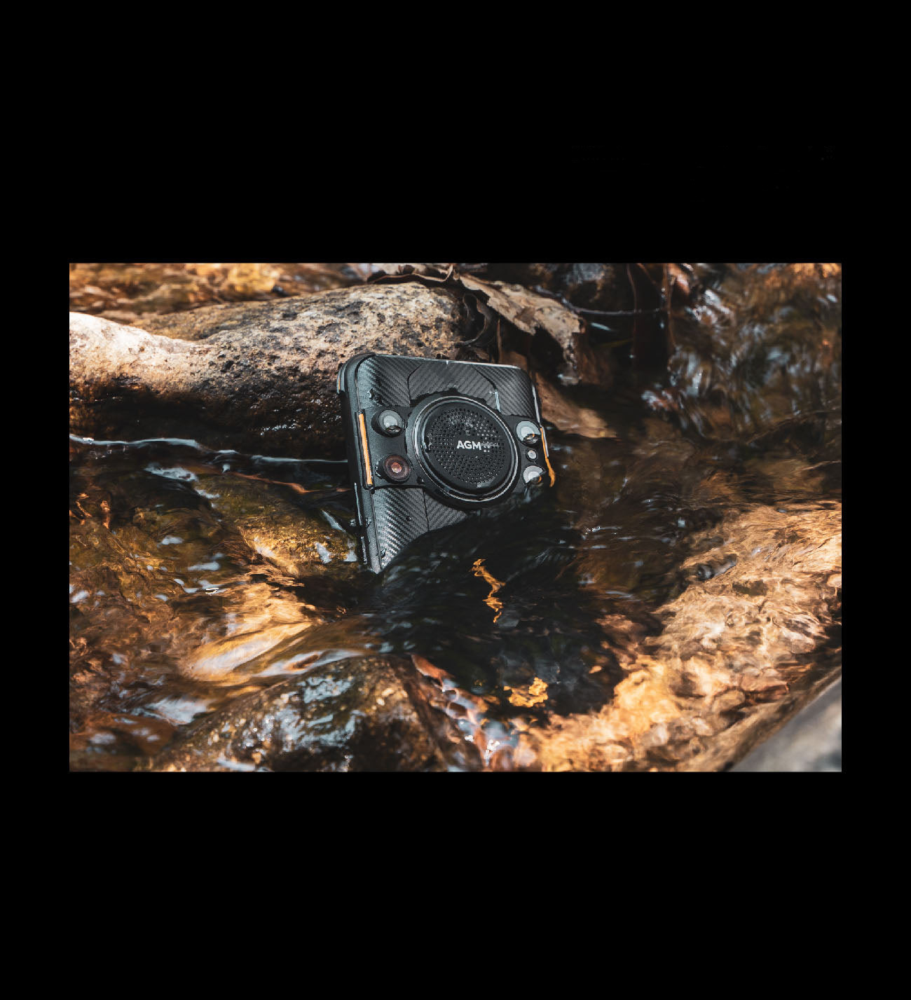 Задняя панель AGM H5 изготавливается как карбоновое волокно*, используемое в аэрокосмической отрасли и военной технике. Обеспечивает гладкую поверхность, устойчивую к царапинам.
